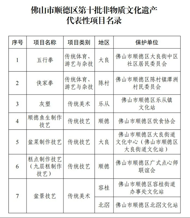 顺德区第十批非物质文化遗产