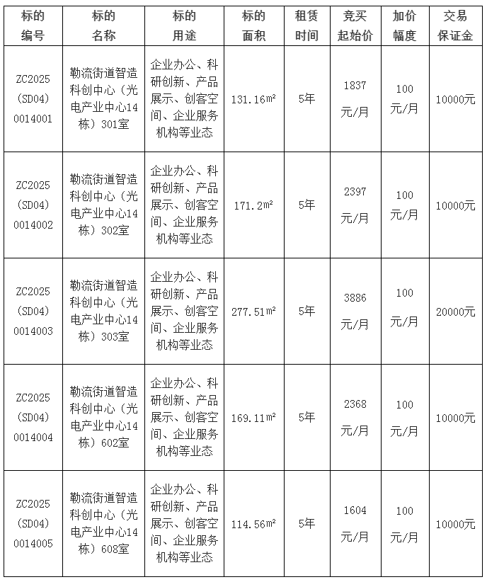 1.项目名称:佛山市顺德区勒流街道智造科创中心(光电产业中心14栋)301室等5宗物业公开招租项目