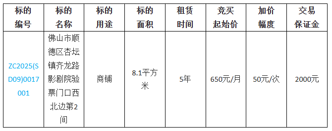 广东杏晖投资控股集团有限公司委托采用网上竞价方式出租位于佛山市顺德区杏坛镇齐龙路影剧院验票门口西北边第2间的使用权,欢迎符合资格的竞买人参与竞价。
