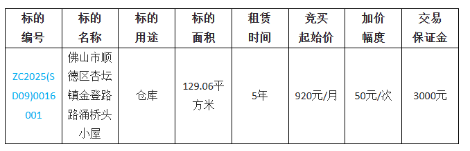 佛山市顺德区杏坛镇金登路路涌桥头小屋租赁公告