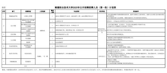 附件:顺德职业技术大学2025年公开招聘校聘人员(第一批)计划表