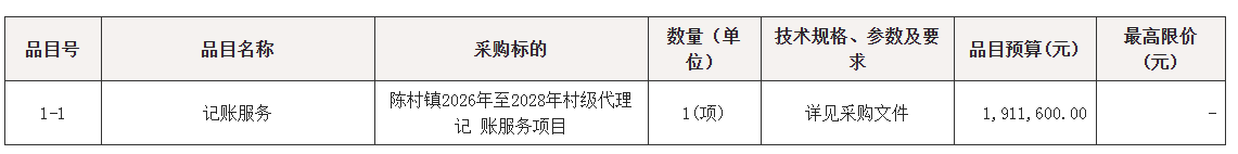 采购包1(陈村镇2026年至2028年村级代理记账服务项目):