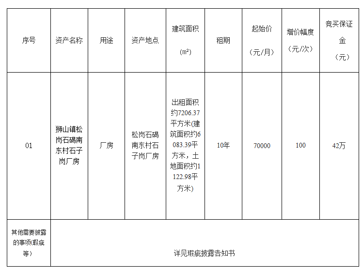 3.产权证照情况:无土地证,竞投人须自行承担由此产生的经营风险。
