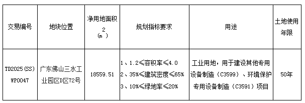 五、有意参与竞买者可于2025年8月26日后登录网上交易系统下载TD2025(SS)WP0047地块的《佛山市三水区国有建设用地使用权网上拍卖出让文件》。