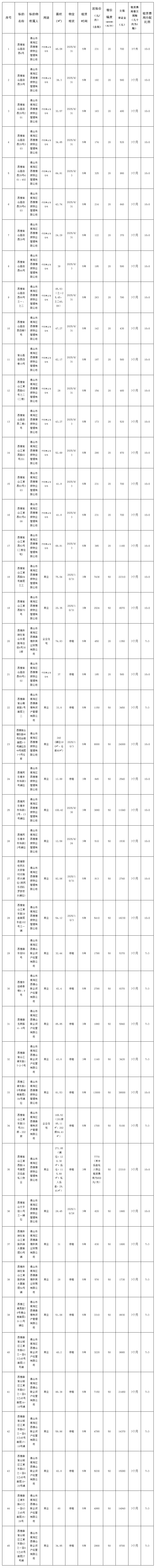 5.上述物业均按现状招租。表内面积数据仅供参考,以实际交付面积为准,不影响租赁费用标准。