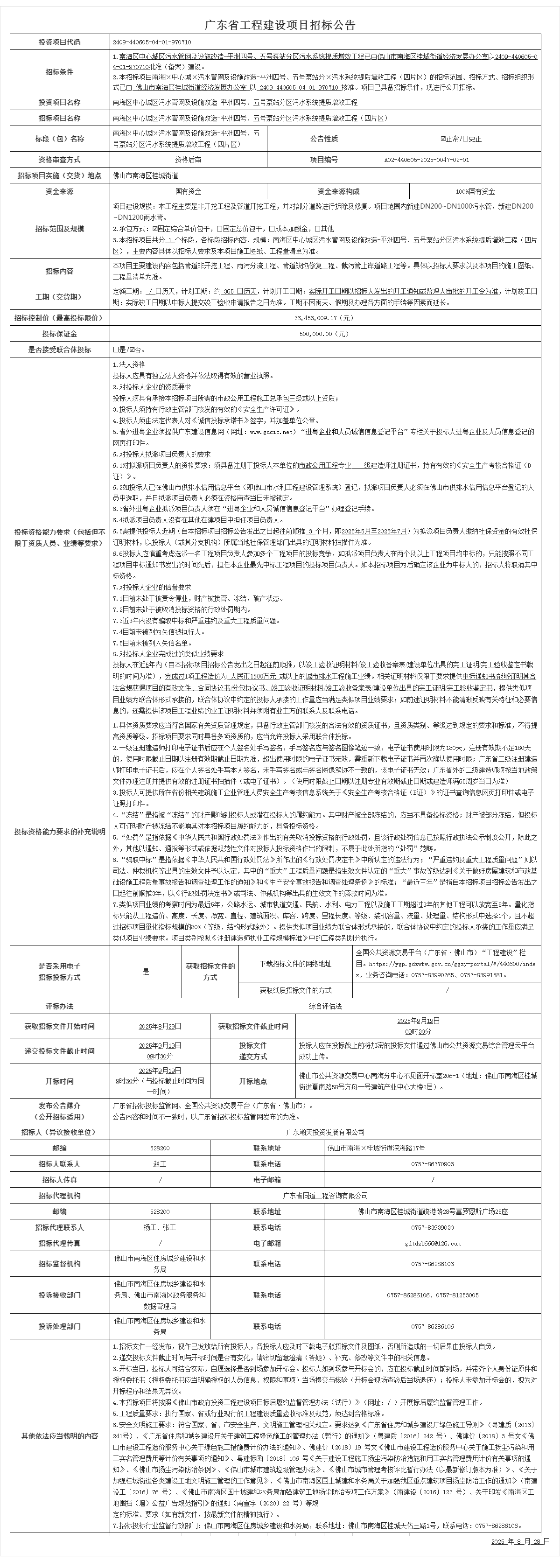 南海区中心城区污水管网及设施改造-平洲四号、五号泵站分区污水系统提质增效工程(五片区一环以东片区)招标公告
