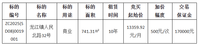 佛山市顺德区龙江镇峰江商贸投资有限公司采用网上竞价方式出租位于佛山市顺德区龙江镇人民北路32号物业使用权,欢迎符合资格的竞买人参与竞价。