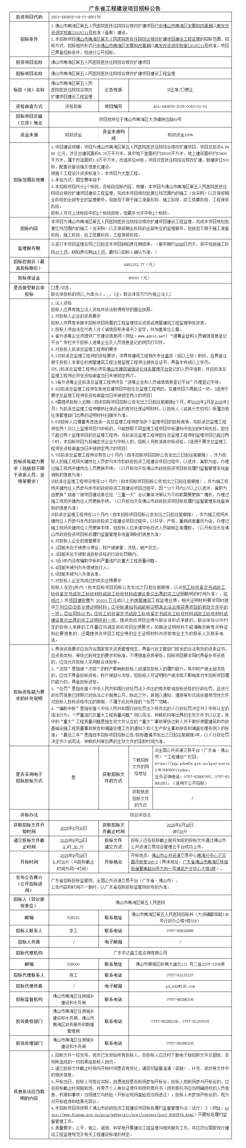 佛山市南海区第五人民医院医技住院综合楼改扩建项目建设工程监理招标公告