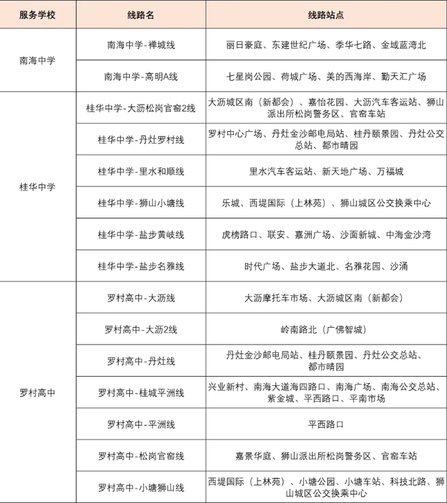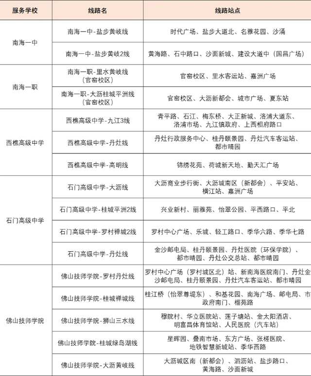 佛山一中、桂城中学、南海艺高里水高中、大沥高中、南海中学、桂华中学、罗村高中、南海一中、南海一职、西樵高级中学、石门高级中学、佛山技师学院