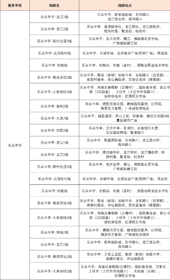 逢学校放学,上学时间,开通980区间线(乐从中学-大墩北地铁站)