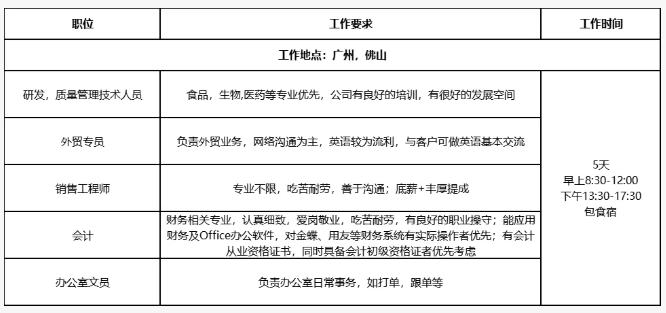 工作地点:中国(三水)国际水都饮料食品基地金淼路(党岗饭堂对面)