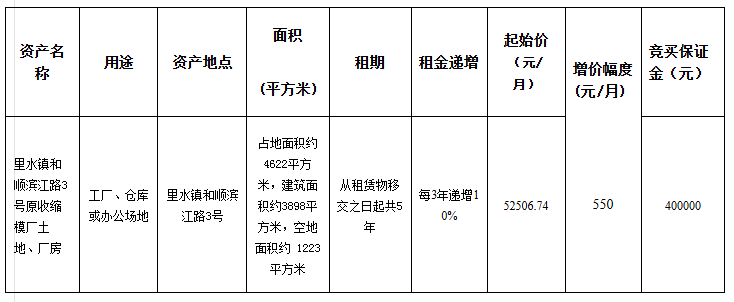 佛山市顺德区容桂街道红旗社区居委会红旗中路77号之一租赁权竞投
