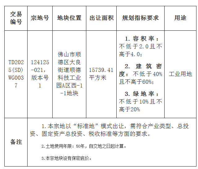 五、有意参与竞买者可于2025年9月2日后登录网上交易系统下载TD2025(SD)WG0037地块的《佛山市顺德区国有建设用地使用权网上挂牌出让文件》。