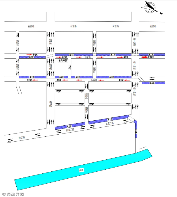 施工期间,华富路(东泽路至高富一路段)、东诚路(东泽路至高富一路段)改为单行道。华富路(高富一路以北路段)改为交替通行单车道。高富二路施工区临时占用西侧路边停车位及局部车道。高富一路(高富二路至西江路段)改为交替通行单车道。原经上述路段通行的车辆及行人,请按现场交通指引标志通行。