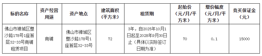 佛山市顺德伦安安防技术有限公司采用网上竞价方式出租位于佛山市顺德区伦教街道永丰村委会工业区南路28号1幢1层之一物业使用权,欢迎符合资格的竞买人参与竞价。