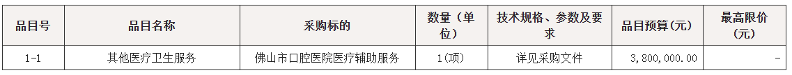 项目名称:佛山市口腔医院医疗辅助服务项目