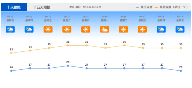 高温回归,天气炎热,户外活动和作业注意防暑防晒,也注意预防局地雷雨。