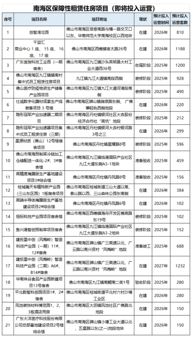 数据见证成效:2021年以来,南海区已累计筹集建设保障性租赁住房项目60个,房源总量达25486套;其中已竣备投入运营14451套,实实在在解决了群众的住房需求。