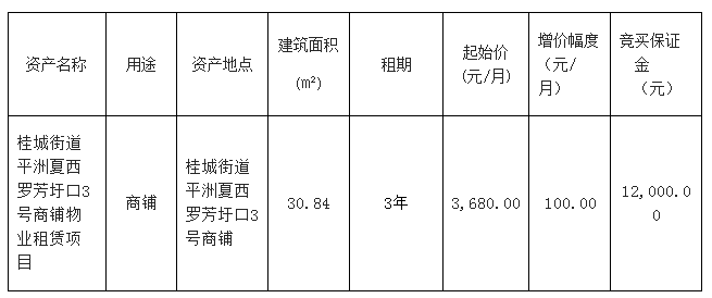 南海桂城街道平洲永安中路3号首层商铺之一物业租赁项目
