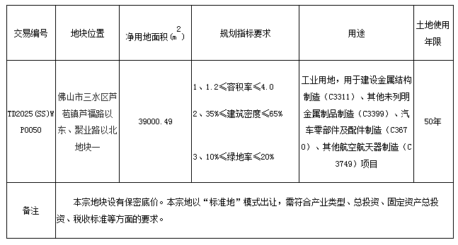 五、有意参与竞买者可于2025年9月10日后登录网上交易系统下载TD2025(SS)WP0050地块的《佛山市三水区国有建设用地使用权网上拍卖出让文件》。