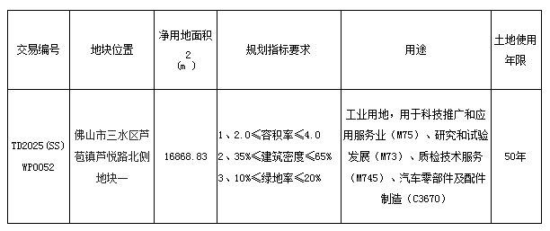 五、有意参与竞买者可于2025年9月10日后登录网上交易系统下载TD2025(SS)WP0052地块的《佛山市三水区国有建设用地使用权网上拍卖出让文件》。
