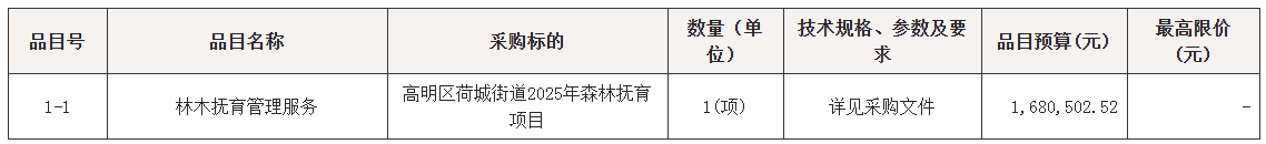 高明区荷城街道2025年森林抚育项目采购项目的潜在供应商应在广东省政府采购网https://gdgpo.czt.gd.gov.cn/获取采购文件,并于 2025年09月22日 09时30分 (北京时间)前提交响应文件。