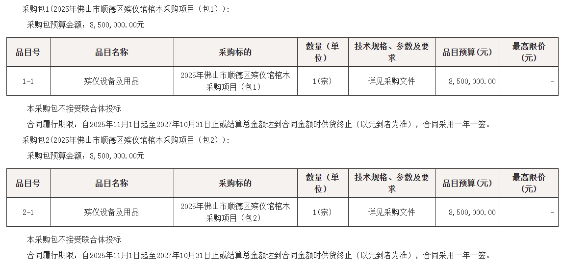项目名称:2025年佛山市顺德区殡仪馆棺木采购项目