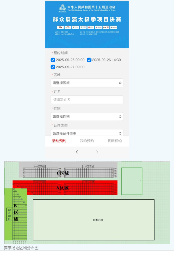 即日起,赛事主办方将开通观众预约观赛通道,只要扫码填写好个人资料预约成功,就可以亲临比赛现场,与全国顶级太极拳选手亲密接触,一睹全运会运动员的迷人风采和中华武术的无穷魅力。