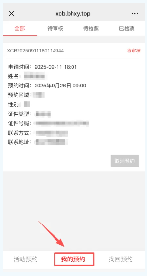 1-2工作日可在预约渠道点击口查看是否通过,审核通过后会显示蓝色按键。观赛当天,点开蓝色按键,会显示出当日的进场二维码,连同有效身份证件,交由工作人员扫码确认身份信息后进场。