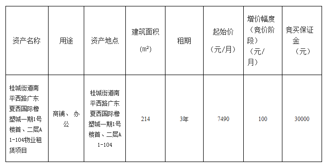 南海桂城街道南平西路广东夏西国际橡塑城一期1号楼首、二层A1-104物业租赁项目