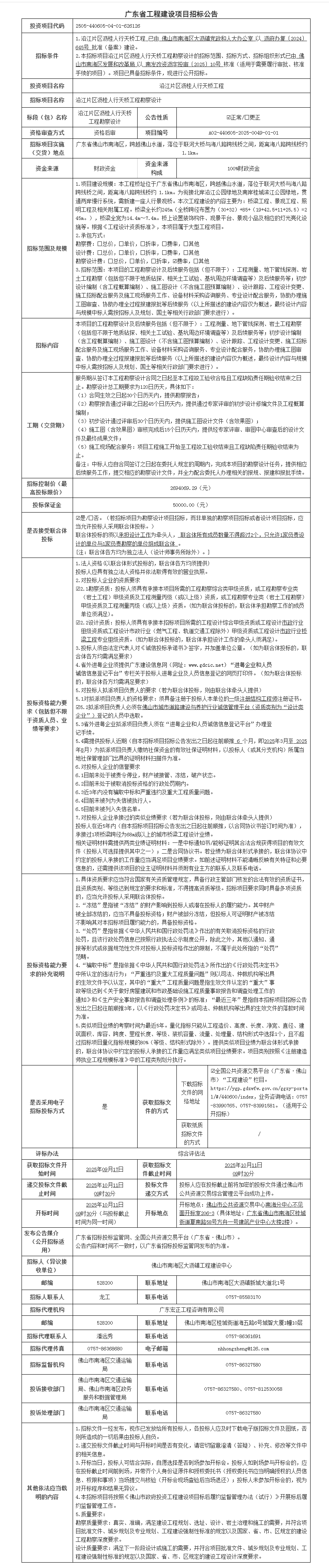 南海沿江片区沥桂人行天桥工程勘察设计招标公告