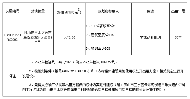 五、有意参与竞租者可于2025年9月18日后登录网上交易系统下载TD2025(SS)WG0002地块的《佛山市三水区农村集体经营性建设用地使用权网上挂牌出租文件》。