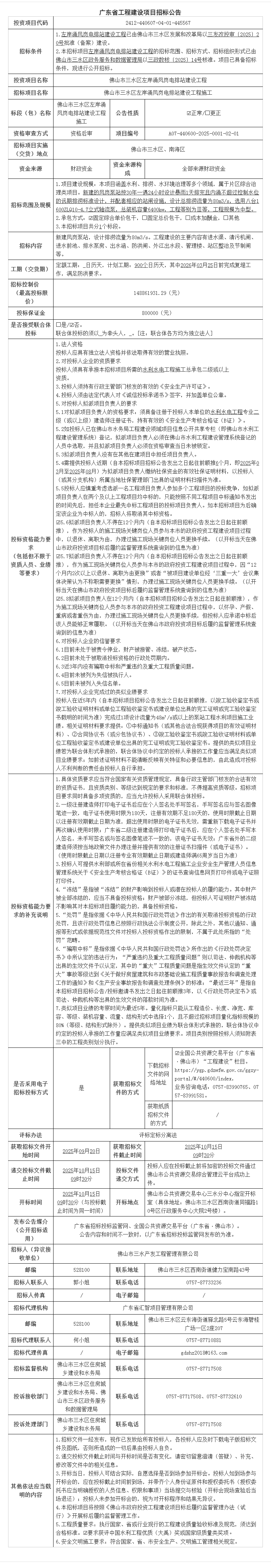 佛山市三水区左岸涌凤岗电排站建设工程施工招标公告