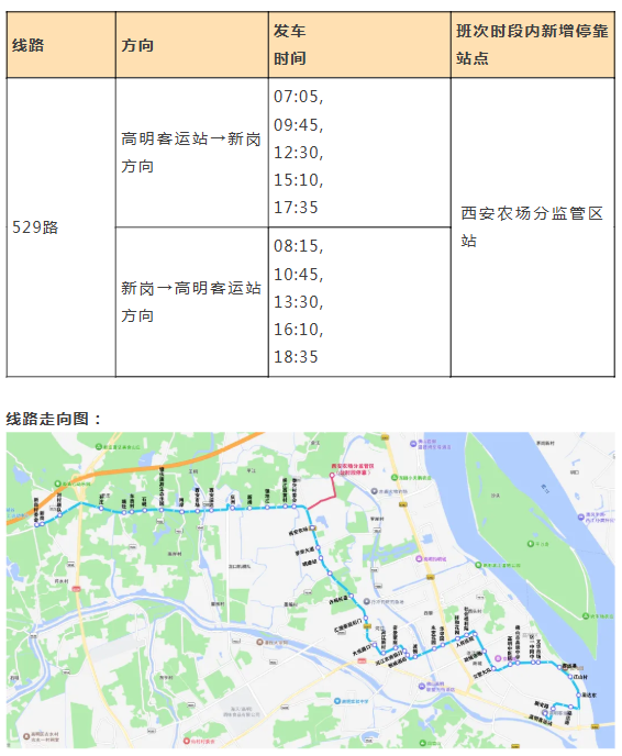 调整方案:该线路每日分时段增加停靠“西安农场分监管区”站,填补526路撤销后的服务空白,具体绕行停靠的班次如下: