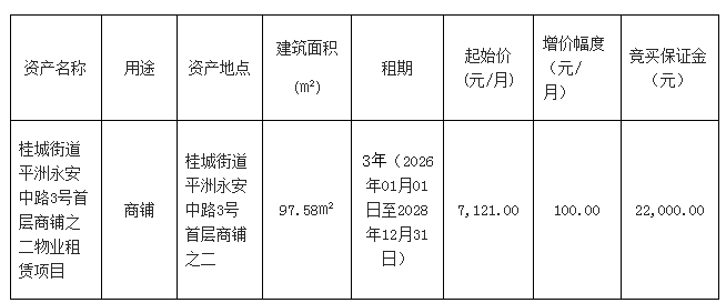 南海桂城街道平洲永安中路3号首层商铺之一物业租赁项目
