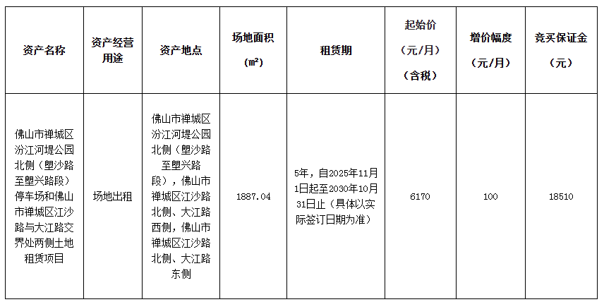 佛山市禅城区汾江河堤公园北侧(塱沙路至塱兴路段)停车场和佛山市禅城区江沙路与大江路交界处两侧土地租赁项目