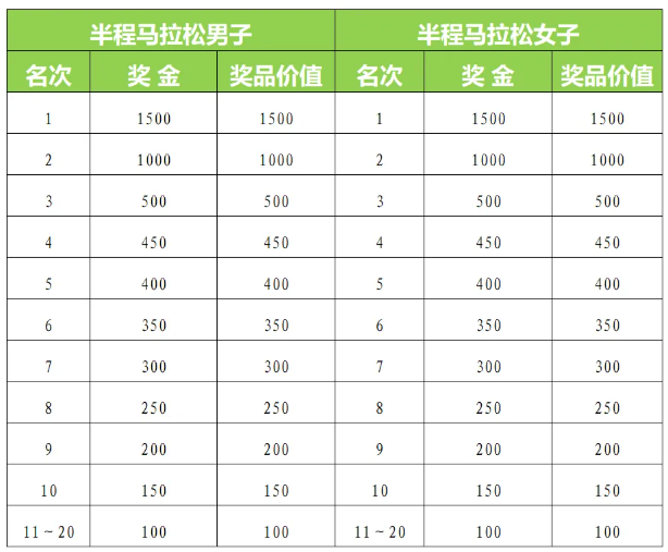 (二)半程马拉松项目名次奖