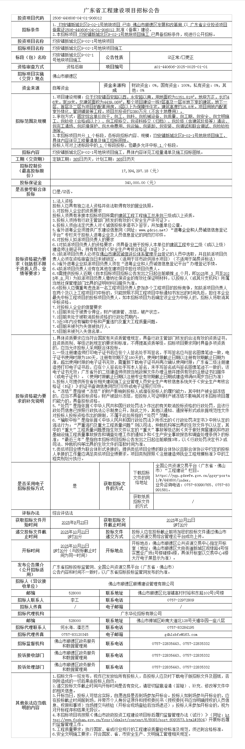 顺德均安镇新城北区9-02-1号地块项目施工招标公告