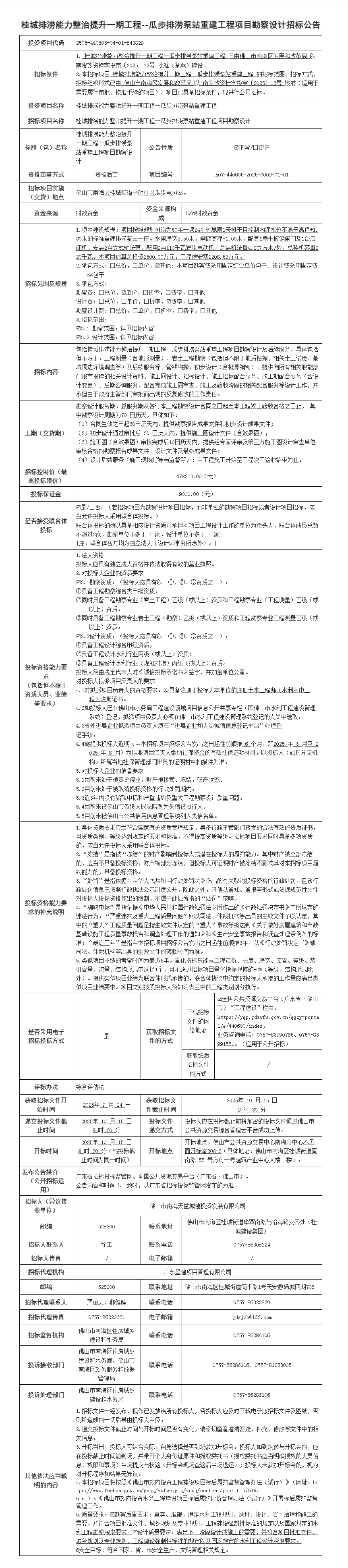 南海桂城排涝能力整治提升一期工程--瓜步排涝泵站重建工程项目勘察设计招标公告