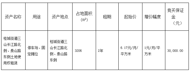 3.产权证照情况:无产权证照(竞买人应充分考虑其风险,一经存入竞买保证金即表示承认、接受本项目的现状,愿意按约定支付租赁价款和遵守租赁合同的约定)。