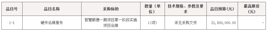项目名称:智慧顺德一期项目第一阶段实施项目运维