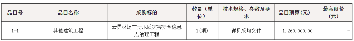 采购包1(云勇林场在册地质灾害安全隐患点治理工程):