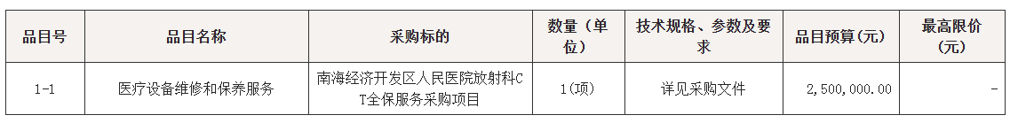 项目名称:南海经济开发区人民医院放射科CT全保服务采购项目