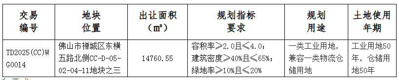 佛山市禅城区国有建设用地使用权网上挂牌出让公告