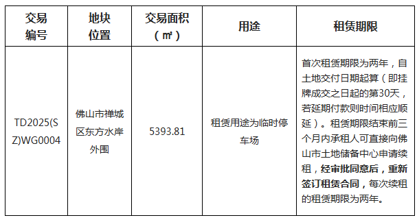 四、有意参与竞租者可于2025年9月29日后登录网上交易系统下载TD2025(SZ)WG0004地块的《佛山市国有建设用地使用权网上挂牌租赁文件》。