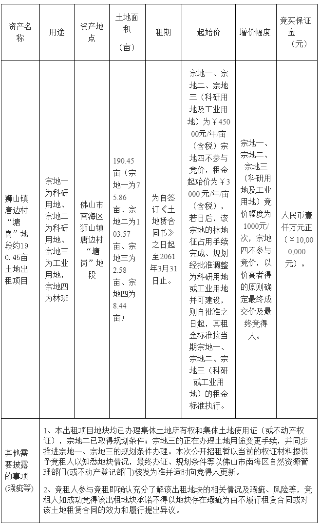 1.招/出租人承诺已如实披露项目信息,并对其披露信息的真实性、完整性、有效性负责。佛山市公共资源交易中心南海分中心对招/出租人披露的信息及其后果不承担任何法律责任。