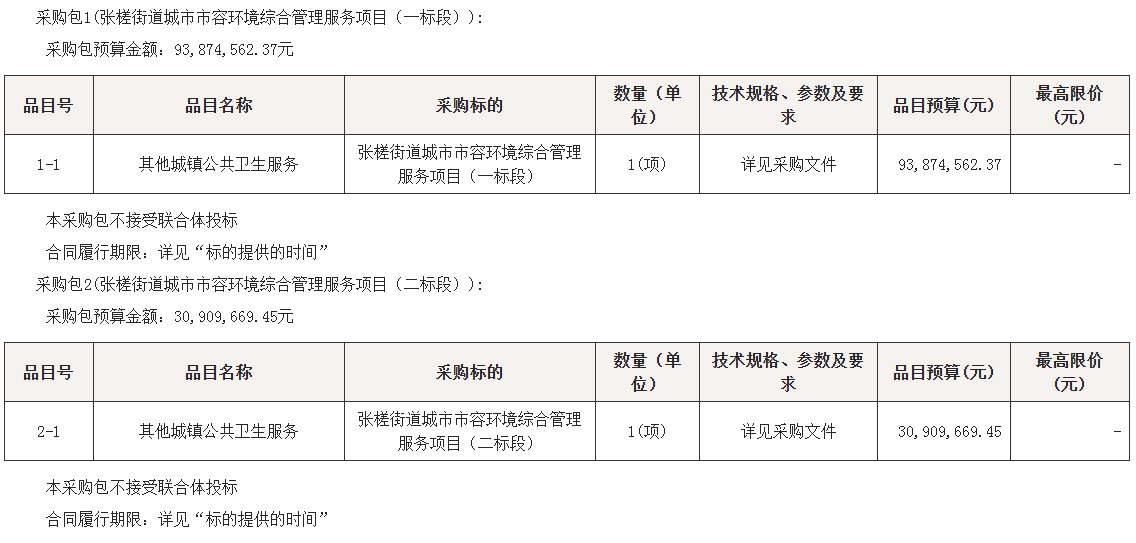 项目名称:张槎街道城市市容环境综合管理服务项目(一标段、二标段)