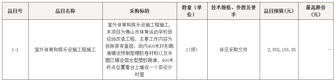 佛山市体育运动学校田径场改造工程采购项目的潜在供应商应在广东省政府采购网https://gdgpo.czt.gd.gov.cn/获取采购文件,并于 2025年10月21日 09时00分 (北京时间)前提交响应文件。