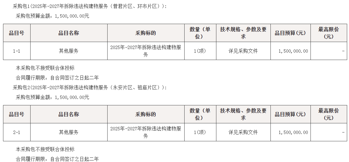 2025年-2027年拆除违法构建物服务采购项目的潜在供应商应在广东省政府采购网https://gdgpo.czt.gd.gov.cn/获取采购文件,并于 2025年10月16日 09时00分 (北京时间)前提交响应文件。