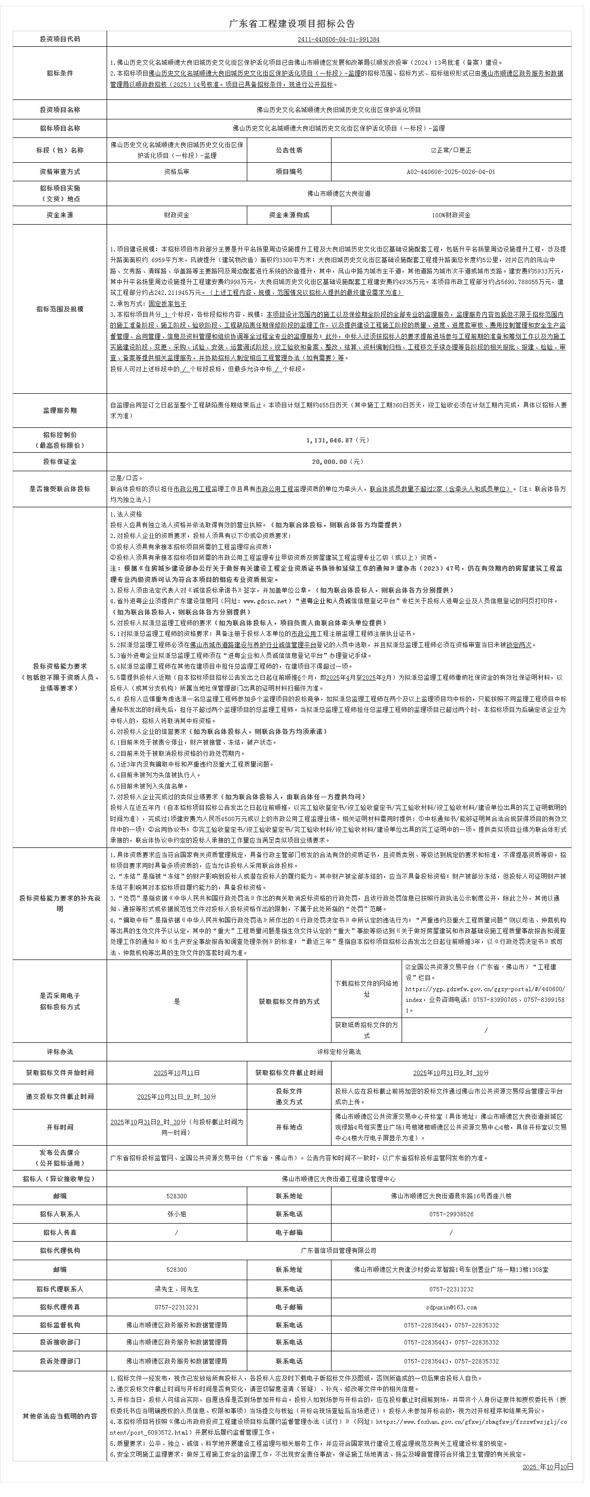 时间:2025-10-12 人气:1484 来源:佛山市公共资源交易信息化综合平台 作者: